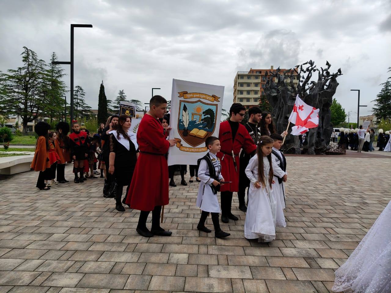 ეროვნული სამოსით საზეიმო მსვლელობა ;